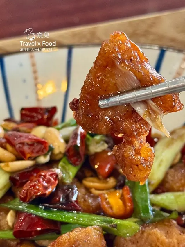 炸過再經大火快炒的宮保雞丁,鹹香開胃,平常只吃得下半碗白飯,可遇到它就是一碗白飯也不夠,花生更是畫龍點睛的配角,和著蔥段吃,超下飯!