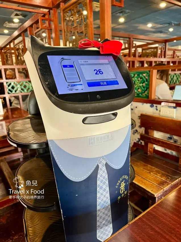 早期的茶自點是人工送餐,後來引進機器人取代人力。想想這設計真的厲害,能流暢地轉彎,還能避開桌椅邊角等障礙物,連聲音都是可可愛愛的相當討喜。