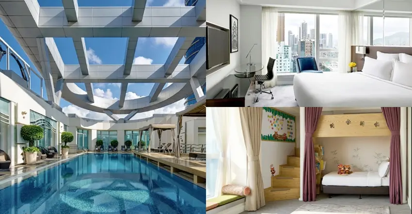 飯店地理位置極其優越,是轉機、親子旅遊與購物狂的首選! 露天無邊際泳池與健身設施: 設有極具設計感的室外恆溫泳池及 24 小時健身房,旅客能在游泳時遠眺大嶼山翠綠山景,是飯店內最熱門的打卡點