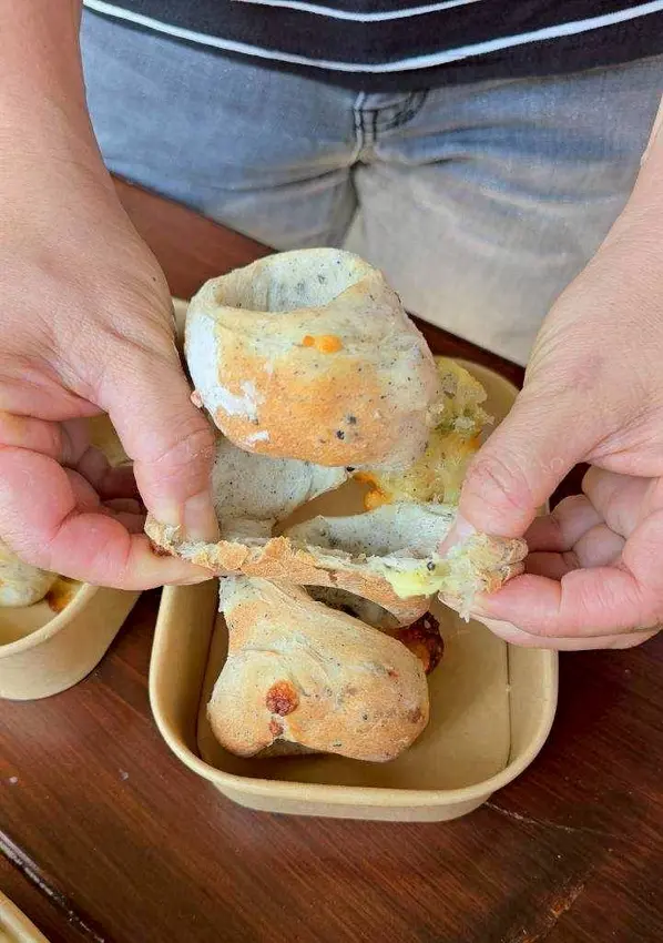 吃完午餐後,我們接著來到烘焙體驗館,準備動手做木棍麵包囉!一進來就讓人有點期待又興奮,不過完全不用擔心,現場都有專人帶領教學,從頭到尾一步一步慢慢來,就算是第一次做也能輕鬆上手。