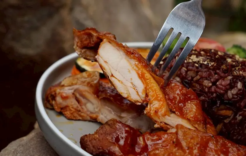 雞腿外皮多了醬香搭上不柴的雞肉甚好!!