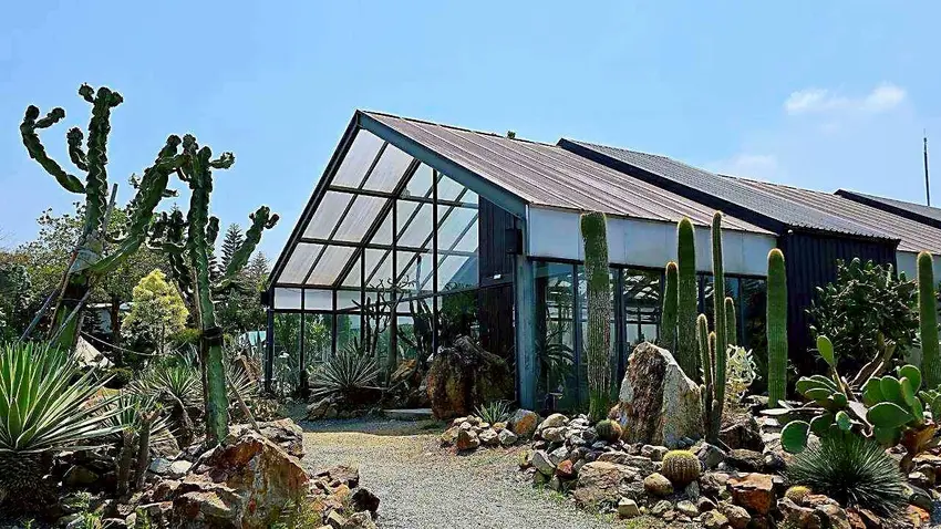 首先,我們先來到玻璃屋準備享用午餐。還沒走進去,就被外面的景色吸引住,四周種滿各式各樣的仙人掌,有高聳直立的、也有圓滾滾可愛的,搭配石頭造景與多肉植物,整個空間帶點沙漠風格,又融合了設計感,看起來特別有異國氛圍。