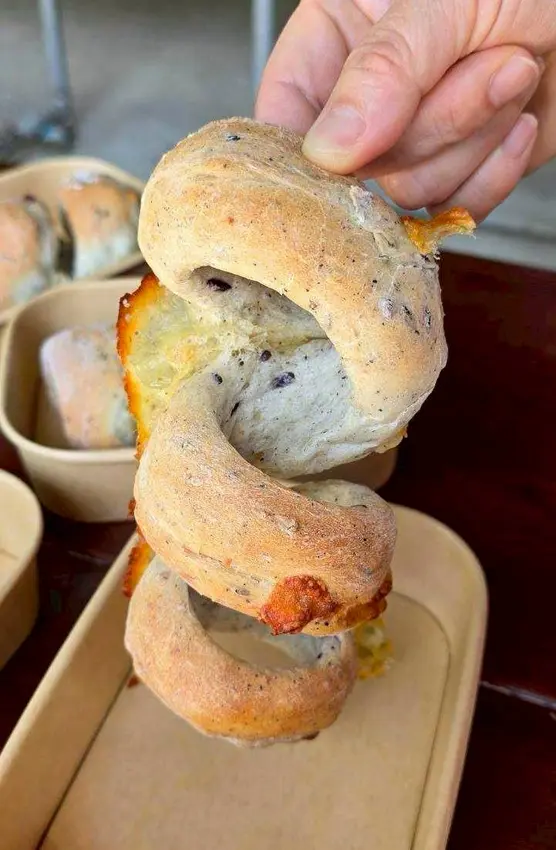 咬下去外皮微酥,裡頭帶點嚼勁與Q度,越嚼越香,那種樸實的風味就像歐式麵包一樣迷人,讓人一口接一口停不下來。