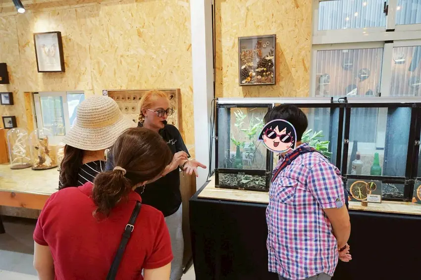 這裡還可以看到超多種類的竹節蟲,像是綠色外型超擬真的綠椒竹節蟲、帶點神秘感的幽靈竹節蟲,還有外型像葉子的葉脩竹節蟲,以及帶有小刺、顏色較鮮明的小紅刺竹節蟲,每一種都各有特色。