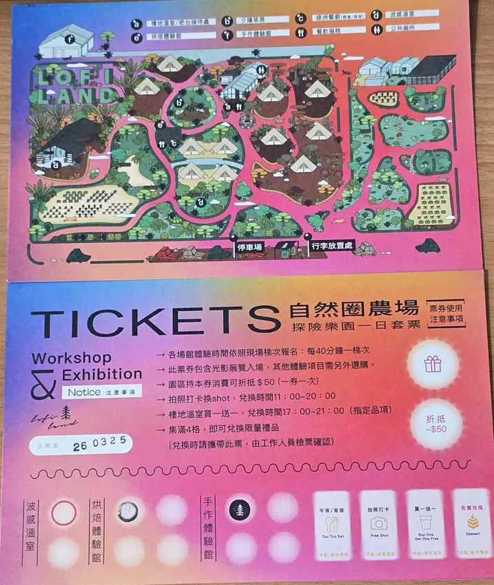 這個是我們今日的一日套票,上面會有自然圈農場的地圖,還有套票資訊、優惠等等~~