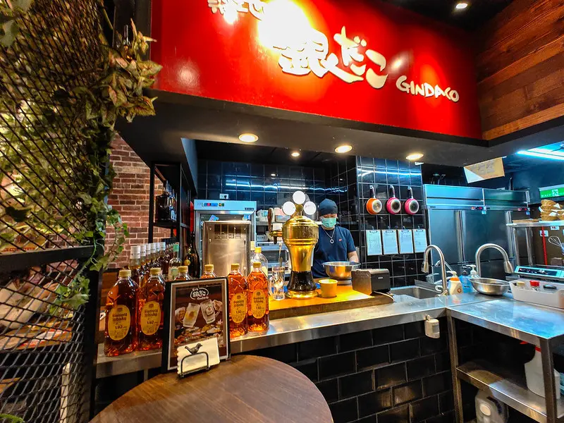 「銀角酒場」主打日本正宗風味的章魚燒,搭配冰涼的角嗨與居酒屋熱鬧氣息,是下班後放鬆微醺的理想去處。