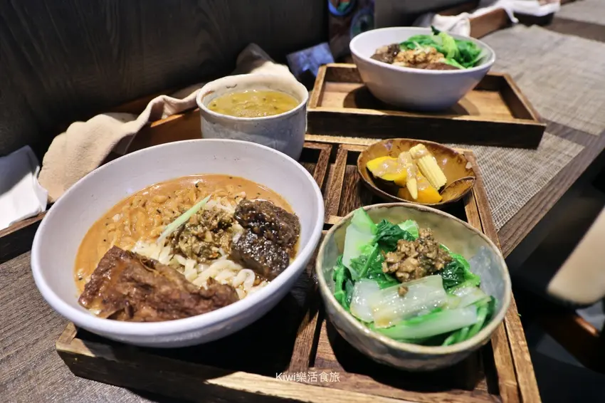 在餐點選擇上,除了單點麵食外,非常推薦升級為豐富的套餐組合。套餐內不僅包含了招牌主食,更附有熱湯與兩款精心製作的涼拌漬物小菜。其中,酸甜清爽的漬物扮演了極佳的味覺轉換角色,能有效解除濃郁醬汁帶來的厚重感。份量拿捏得恰到好處,從主餐到配菜皆展現了極高的質感與精緻度,其純粹的蔬食風味,即便是非素食者品嚐後也會大為驚豔。