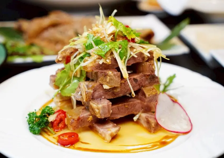 淋上主廚秘製滷汁,再結合特製香辣醬汁,香氣瞬間被帶出來。牛腱肉口感柔軟中帶點筋Q,越嚼越香,辣度恰到好處,帶出開胃又過癮的層次感,讓人忍不住一口接一口。