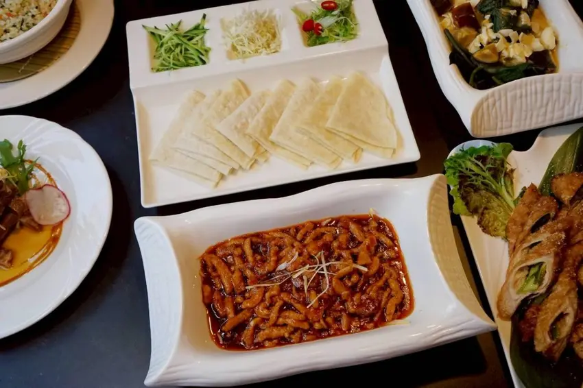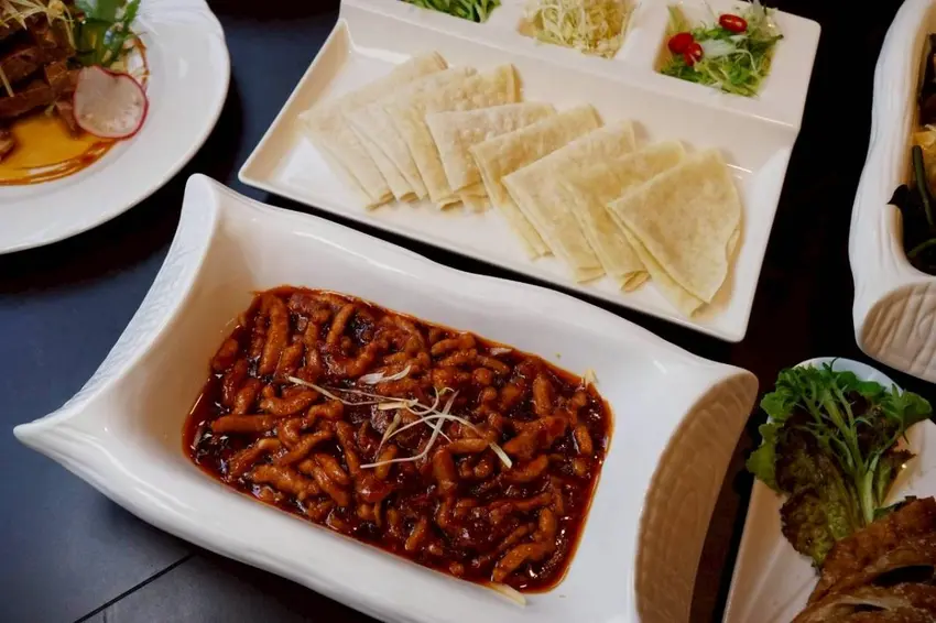 這道京醬扒肉絲附8片餅皮一上桌就讓人忍不住食指大動,吃法有點像在享用烤鴨夾餅,只是把主角換成了香氣十足的京醬肉絲,多了一份濃郁又帶點甜鹹交織的迷人風味。