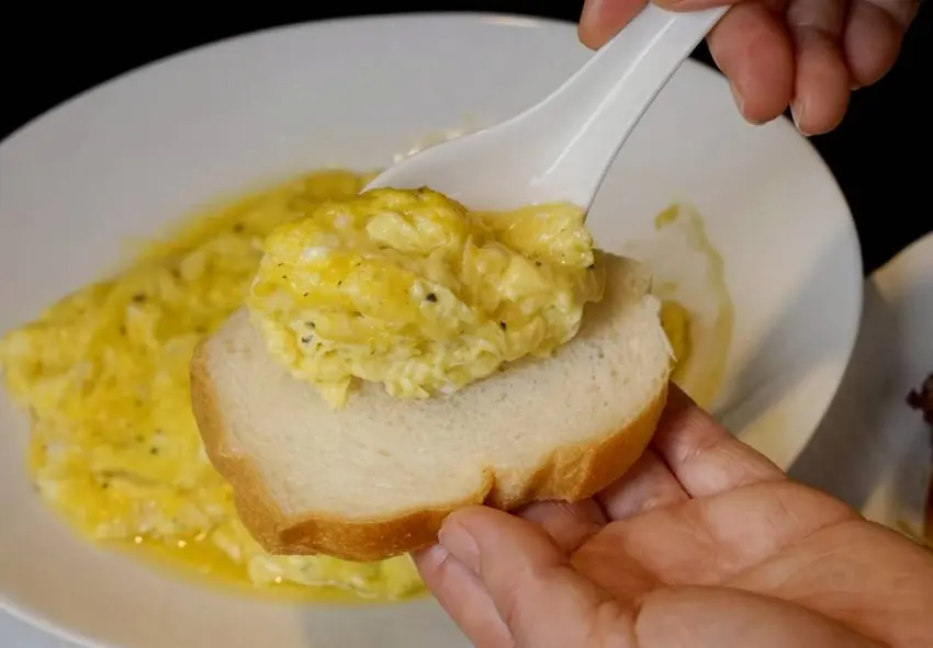 滑蛋的口感超綿密,就像奶油在嘴裡化開一樣,搭配松露的香氣,每一口都好滿足。厝秘還有個特別的吃法,就是可以配上店家自製的法棍一起吃,有點像在吃西餐前菜那樣優雅,但又不失簡單的樂趣。法棍本身的香氣加上滑蛋的水嫩,咀嚼起來層次感超豐富。最迷人的還是那濃郁卻又恰到好處的松露味,一口就停不下來,吃完還會忍不住立馬再加點一份法棍XD