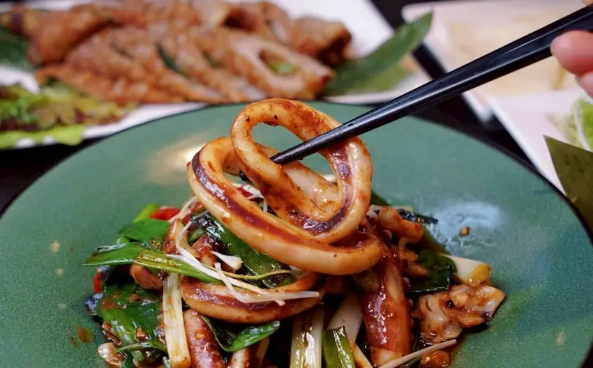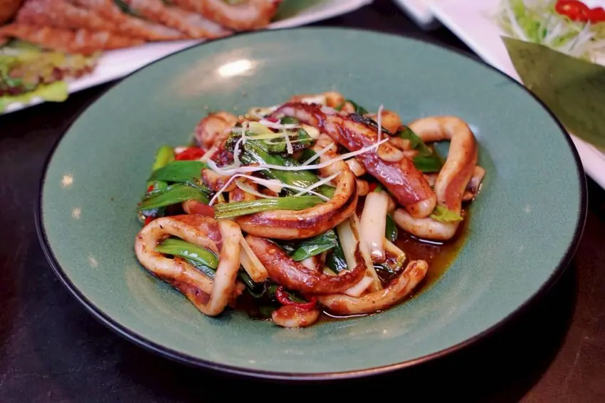 魷魚切成厚實圈狀,外層微微帶點彈脆口感,咬下去Q彈有勁,完全沒有腥味,反而越嚼越能感受到海味的鮮甜。醬汁是這道的靈魂所在,帶點花椒的微麻與辣椒的香氣,超級涮嘴,喜歡椒麻風味的朋友,真的不能錯過!