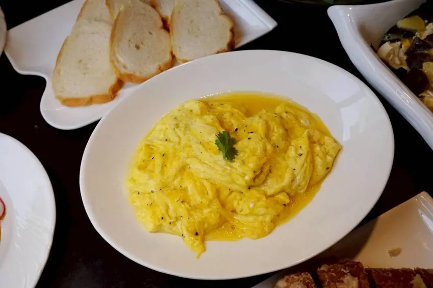 松露滑蛋附法棍麵包,如果還有需要法棍可再加點!以蛋液和松露醬一起煎得滑嫩,上桌前再淋上松露油,香氣瞬間就爆出來,整個味道更明顯了~