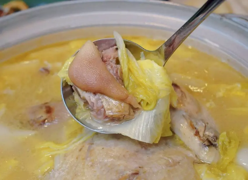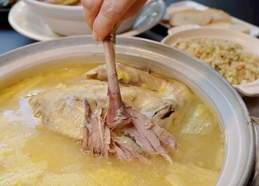 整鍋湯呈現淡淡金黃色又帶點乳白感,喝起來香潤順口,完全是那種會回甘的濃郁系雞湯。白菜的甜、雞肉的鮮,再加上長時間燉煮釋放出的膠質,整個味道層層堆疊,每一口都很有深度,真的會讓人邊喝邊點頭那種~