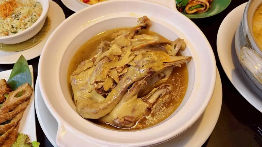 鴨肉的口感更是這道的靈魂所在,燉煮到極致軟嫩,用筷子輕輕一撥就能骨肉分離,尤其是鴨腿部位,一絲一絲剝開幾乎不費力,肉質細緻又多汁,完全沒有乾柴感,每一口都超級入味。連薑片也燉到軟而不辣,帶著微微辛香,直接入口也很好吃,意外地加分!