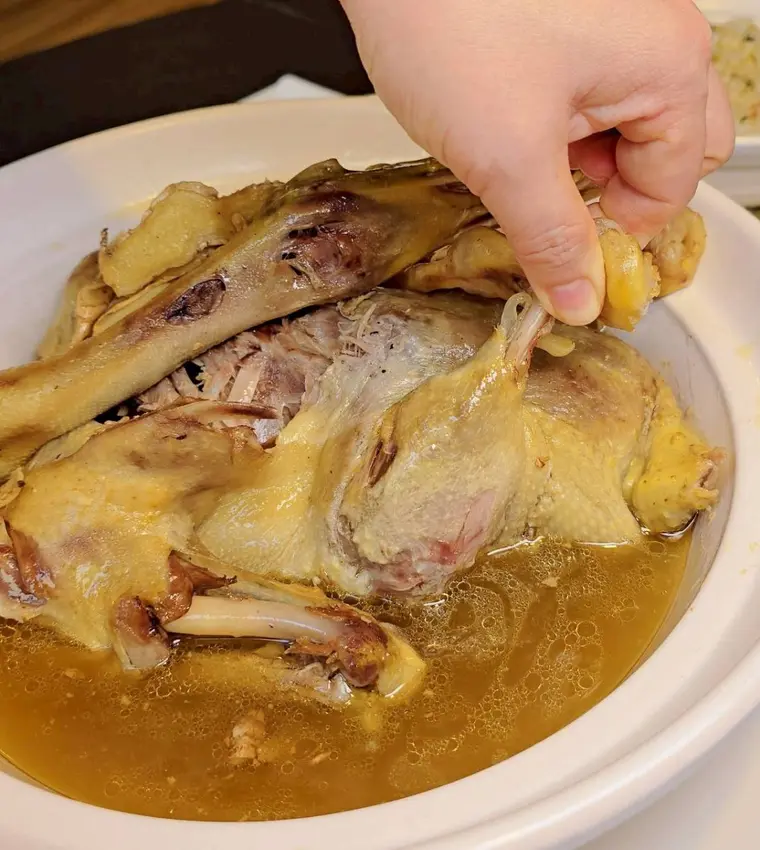 小涼這次還特地用兩隻大湯匙把整隻鴨撐起來拍照,想完整呈現給大家看,但真的要很小心,一不注意就會直接骨肉分離,可見這鴨肉燉得有多軟嫩,光看照片就很有說服力啊!