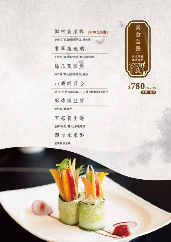 就算家人朋友中有人吃素食也沒有問題,在訂位時提早幫他預訂素食套餐即可唷!