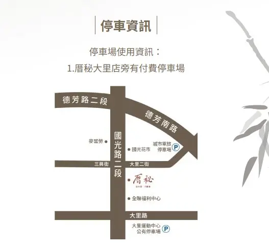 除了路邊停車格以外,厝秘大里店附近也有付費停車場唷!
