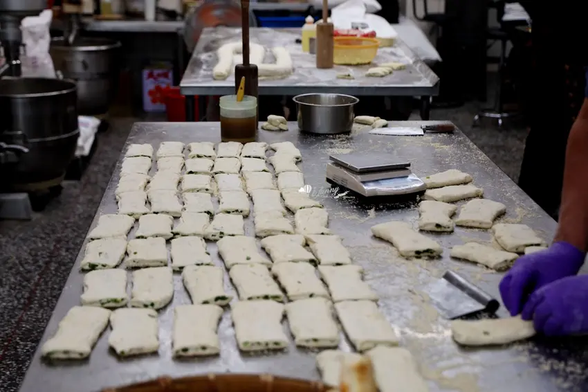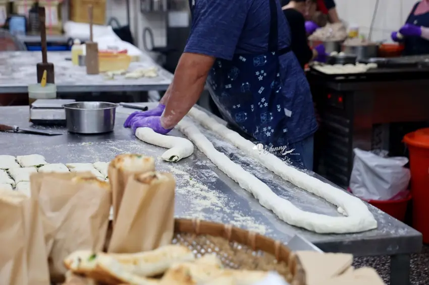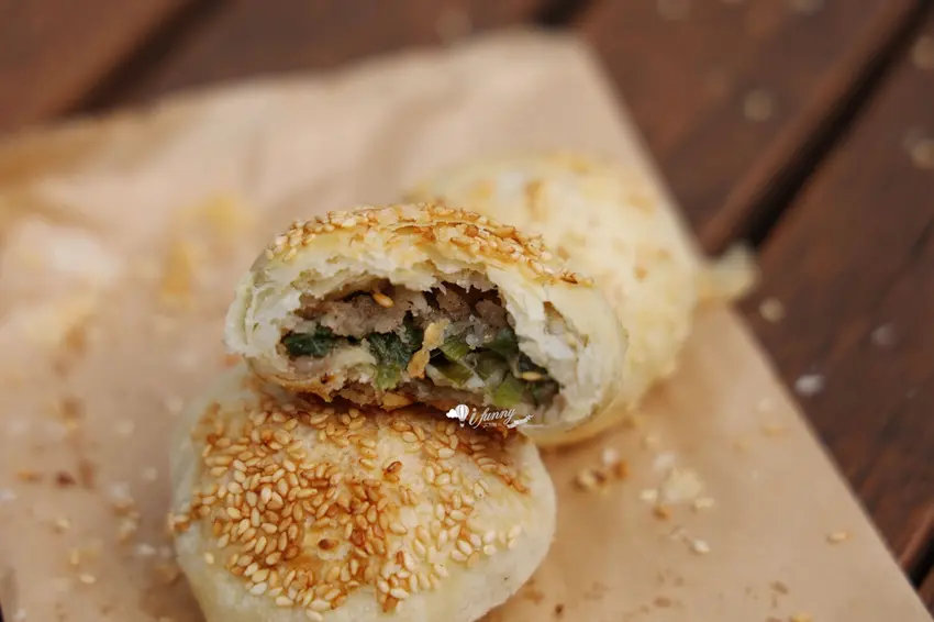 招牌三角炭香飄,滿滿蔥餡多汁甜