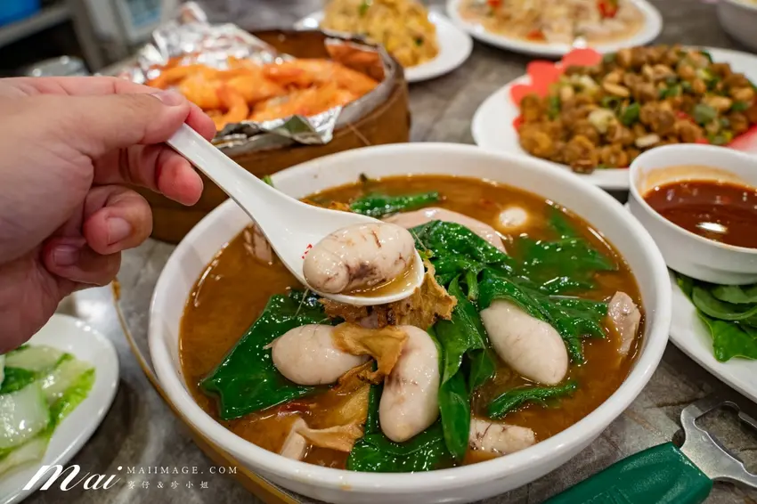 餐廳最前方的活海鮮檯是整間店的精華,擺滿了當天現撈的魚、蝦、貝類與各式鮮蔬,現點現做的魅力讓人難以抗拒。既然店名叫鵝肉城,限量供應的鵝肉絕對是必點清單。看著師傅在點餐區俐落切開油亮飽滿的鵝肉,每 1 盤都在引誘饕客的味蕾,手速太慢真的只能看著隔壁桌流口水。這裡的海產強調漁港直發,維持了極高的鮮度與公道的價格,無論是想嘗試龜山島活海鮮,還是經典的台式海產路線,這裡都能提供最完整的饗宴。
