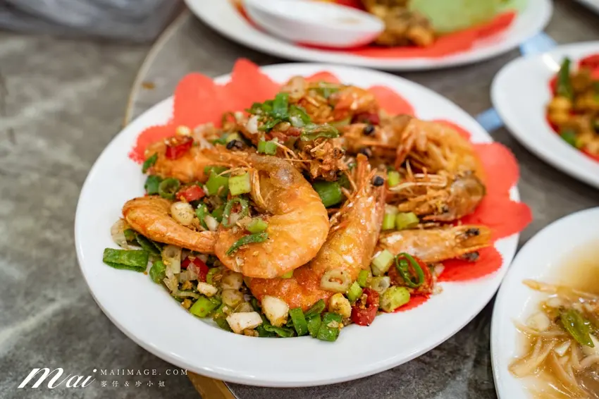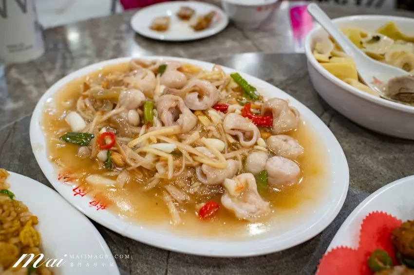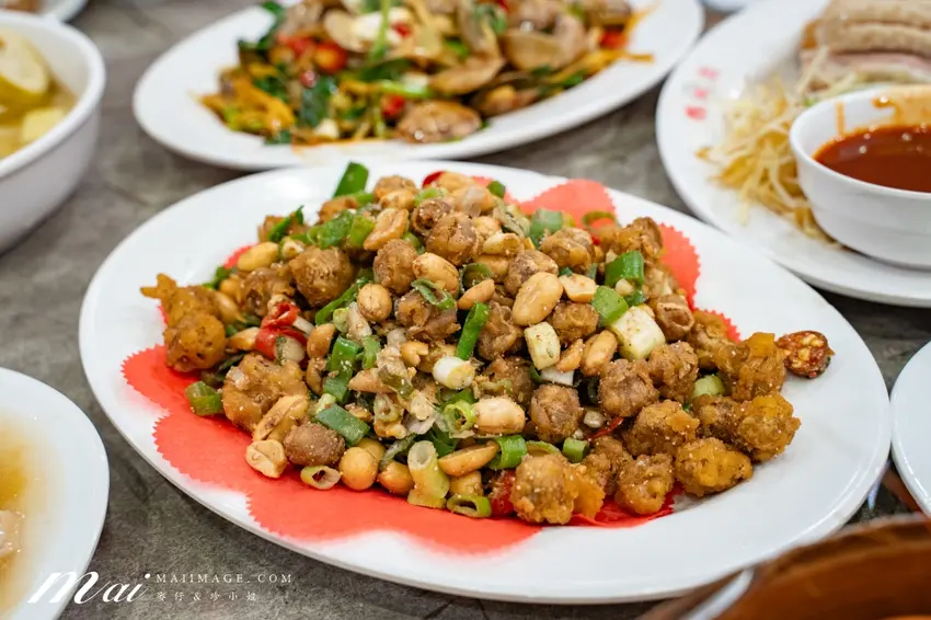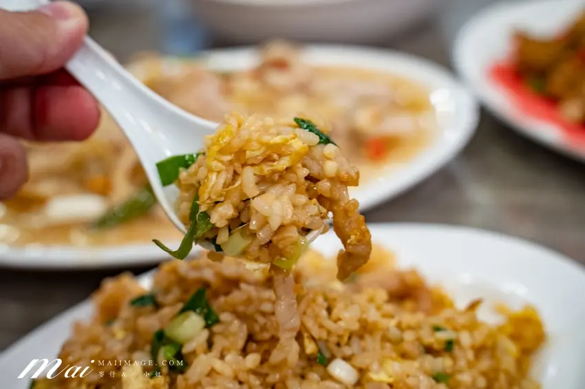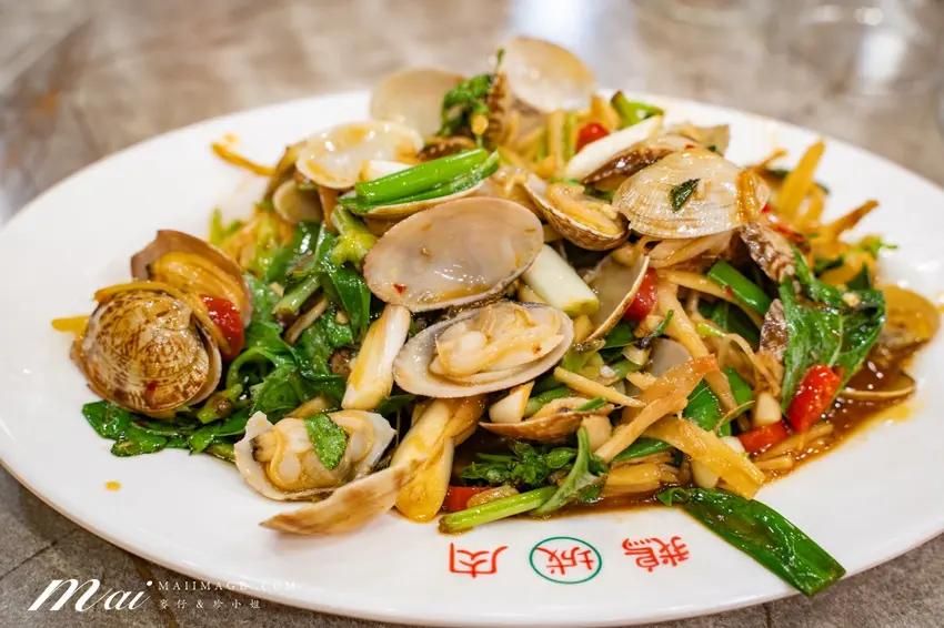 來到這裡絕對要點鵝肉切盤,分為鹽水與煙燻 2 種口味,鹽水款最能吃出肉質的 Q 彈與甘甜。熱炒類更是精彩,個頭飽滿的炒海瓜子醬香十足,清蒸白蝦則保留了自然的甜度。熱門的蔥爆牛肉鑊氣滿分,蚵仔酥裹上恰到好處的麵衣炸得金黃酥脆。若是喜歡鹽酥風味,整隻連殼都能吃的鹽酥蝦與外酥內嫩的花生龍珠也是經典。此外,內行人還會點上 1 份薑絲大腸,酸度與嚼勁交織,搭配粒粒分明的肉絲炒飯,每一口都是道地的台式浪漫。