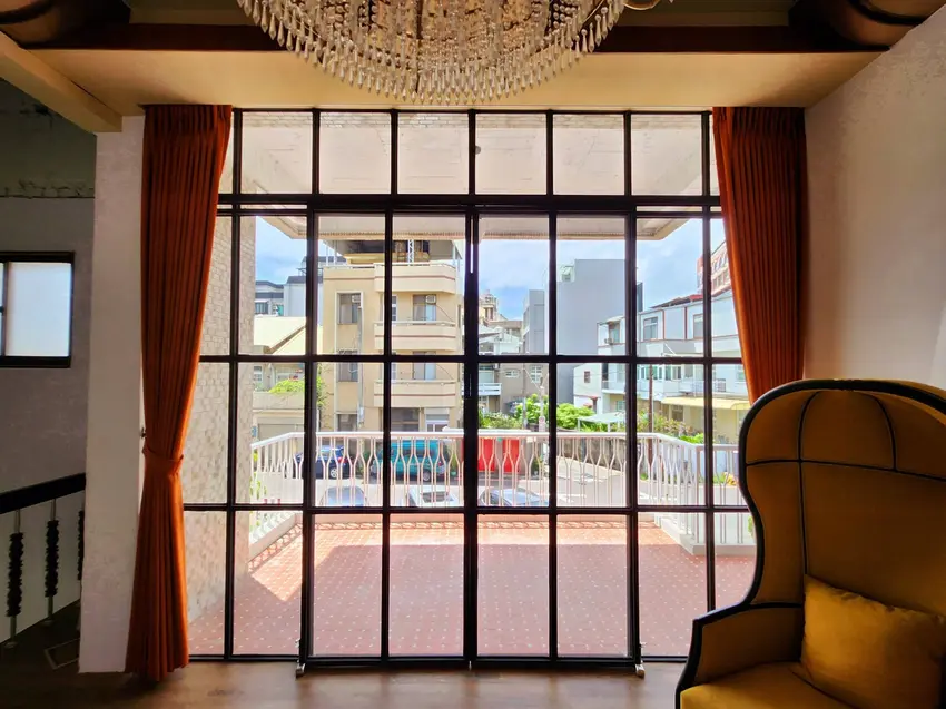 客廳營造出溫馨復古氛圍,保留古早味的裝潢,配有舒適的沙發、電視及Netflix和Youtube,老房子內玻璃窗引進戶外陽光,讓民宿充滿迷人的古早味與歲月感