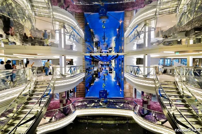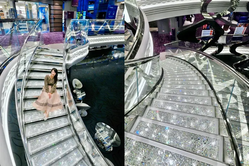 這是郵輪上的經典!運用61,440顆奧地利水晶打造,出自義大利工匠之手,每一步階梯都閃耀著璀璨光芒,是拍出名媛風大片的絕佳場景。