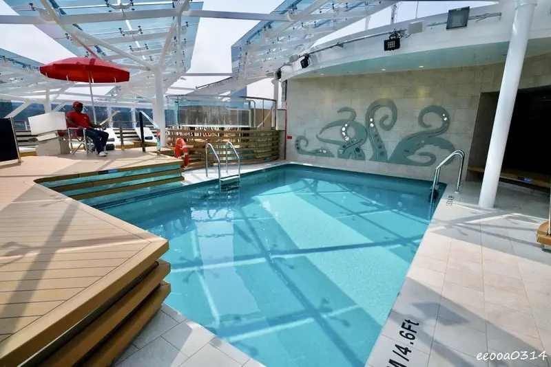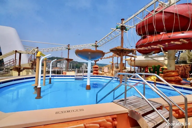船上有多個泳池及SPA按摩池,像是位於15層的氛圍泳池、大峽泳池,以及16層的天際綫泳池。