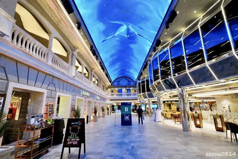 其中氛圍泳池面積約1,500平方米,為主泳池區域,夜間搭配巨型LED螢幕與繽紛燈光,適合舉辦派對。