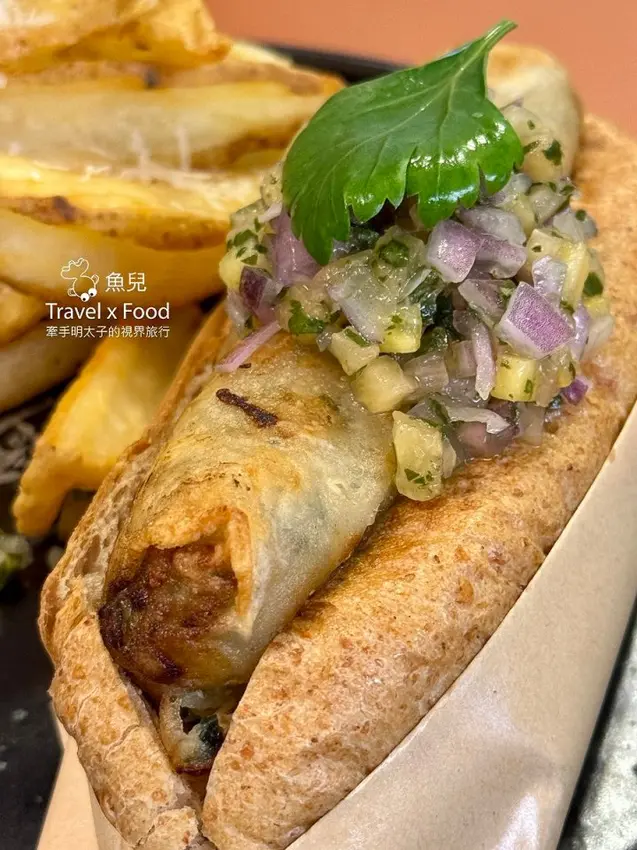 造訪 EMMA’s HOTDOG ,感覺像是飛到國外旅行,連河內炸春捲也能跟麵包搭上線,奇妙的組合令人躍躍欲試。春捲內餡全是蔬菜,表面炸的酥脆,加入德式酸菜與鳳梨莎莎醬,有種特別卻也不違和的口感,喜歡嚐鮮的人值得一試。