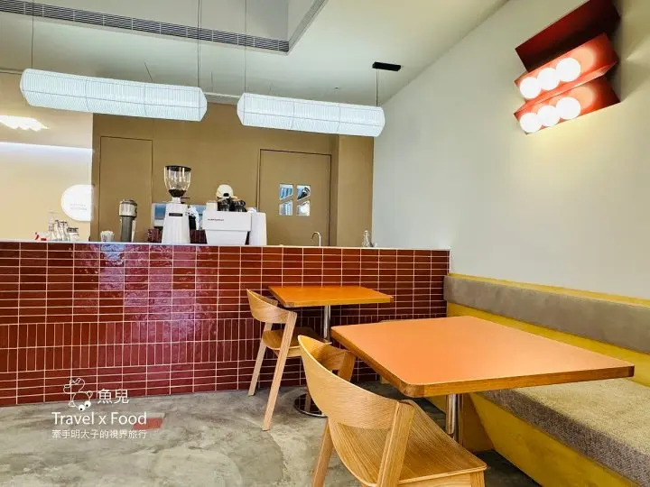飲料吧台架設在整間店的中後段位置,俐落的紅色瓷磚為整體風格加了分,更有日系的味道了。