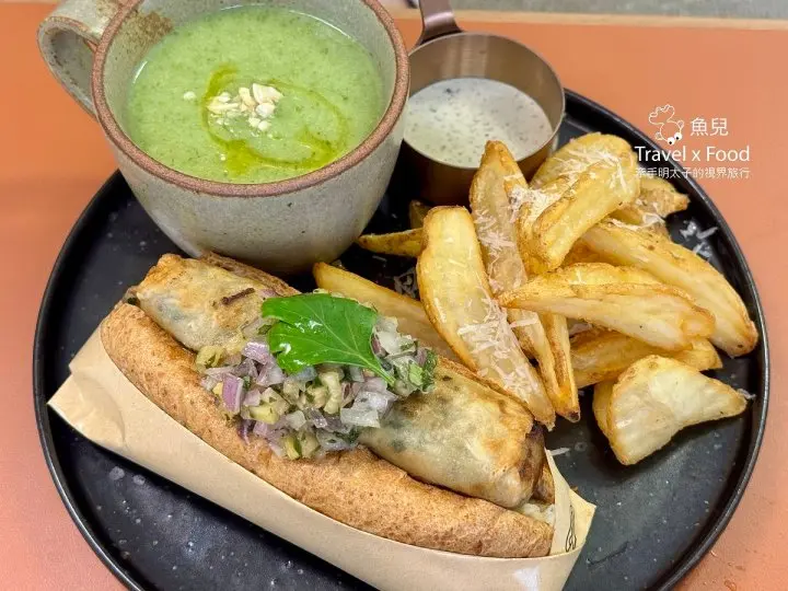 套餐組合→河內春捲熱狗堡(素食)+松露薯塊+主廚例湯。