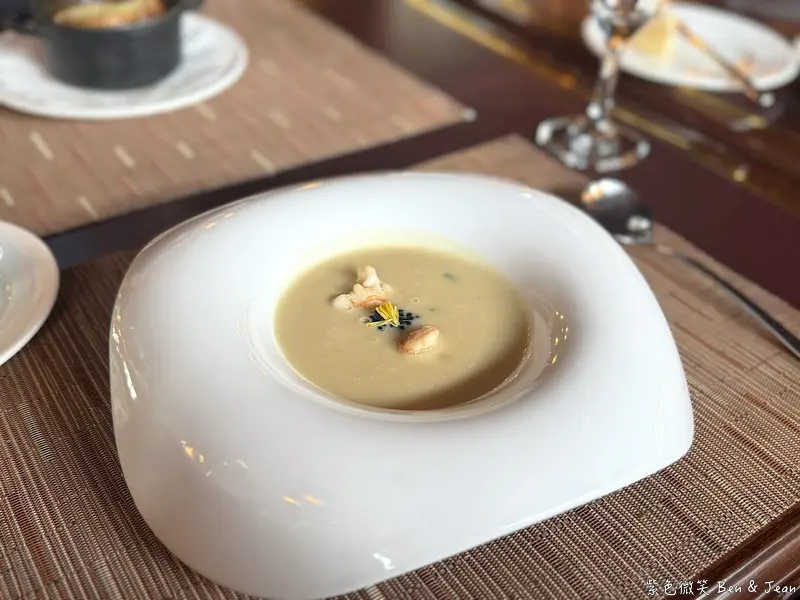 奶油香濃但不厚重、還帶有淡淡的韭蔥蔬菜香,口感非常滑順,或是說有種絲絨感