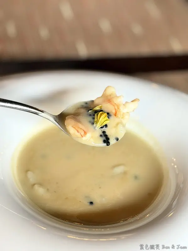 整體來說,高雅、清爽又有海鮮鮮味,蝦肉則是增添不同的口感,有畫龍點睛的感覺