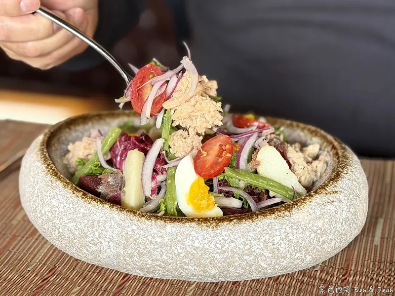 傳統尼斯沙拉包含很多食材,像是 鮪魚、 水煮蛋、 番茄、 黑橄欖、 馬鈴薯、 四季豆、生菜或嫩葉菜