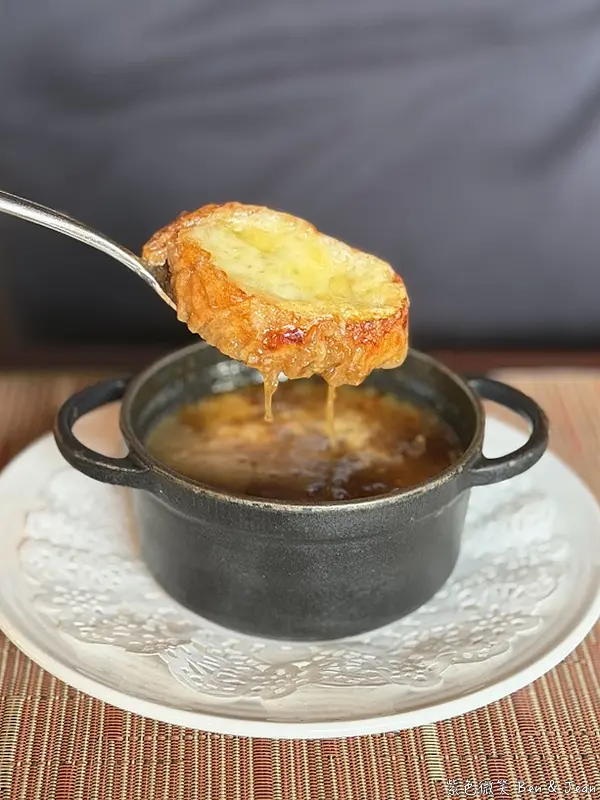 一般嚐到的都是比較香甜口味的洋蔥湯,但這裏可是正宗法式的口味