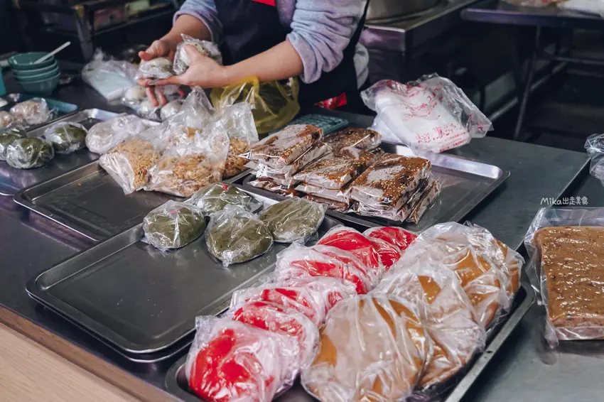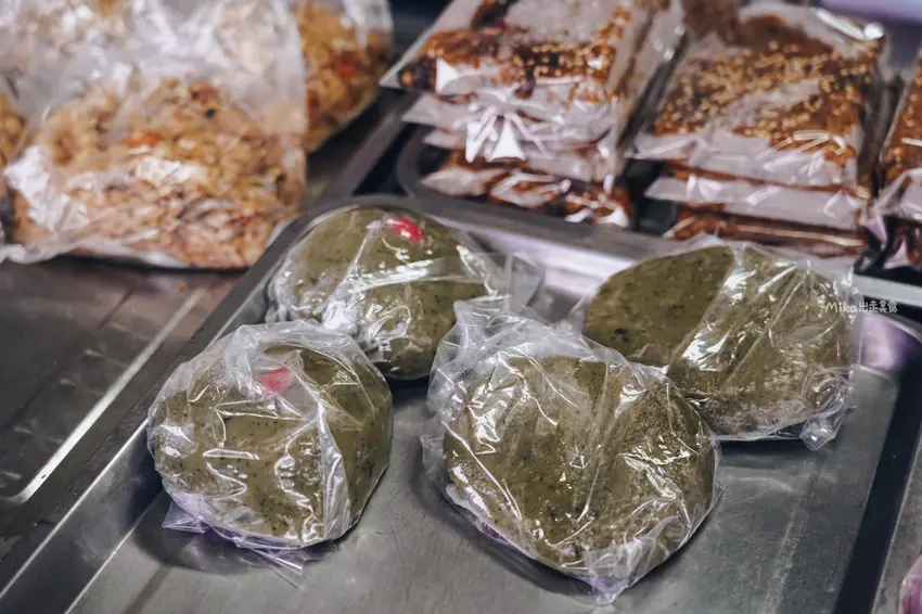 這款草仔粿的口感以紮實見長。內餡選擇多元,相較於香氣表現平順的菜脯米,甜口味的紅豆餡表現更為出色。紅豆泥細緻且甜度適中,配上帶有草本氣息的艾草皮,整體滋味相當順口。雖然為了維持造型穩定而讓皮層比例較厚,但對於喜愛 Q 彈咬勁的人來說,這種紮實感反而能帶出糯米本身的清甜。