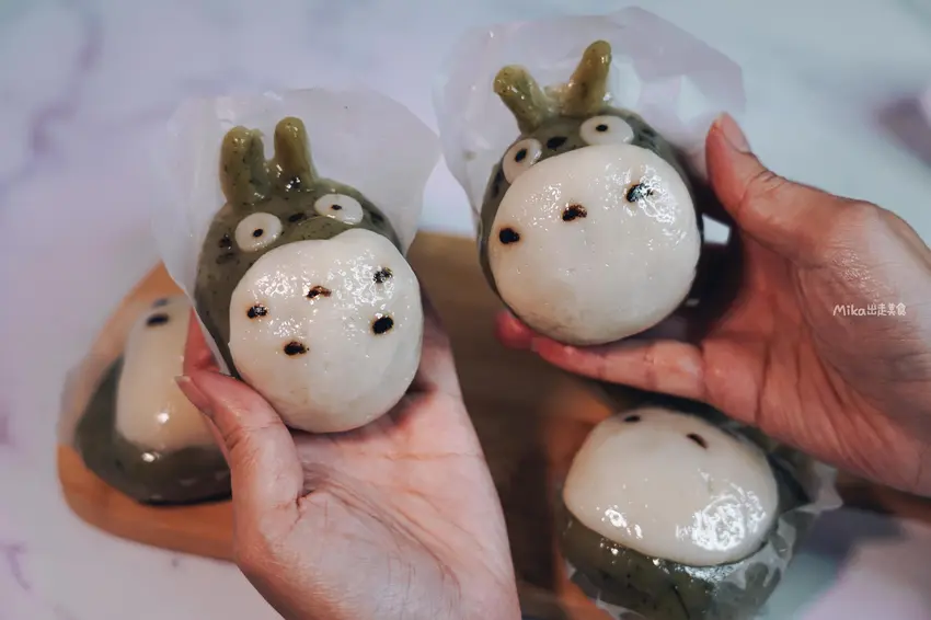 位於中壢工業區內的陸媽媽菜包,這裡最受矚目的莫過於外型極其吸睛的龍貓造型草仔粿,打破傳統客家點心樸實的樣貌。