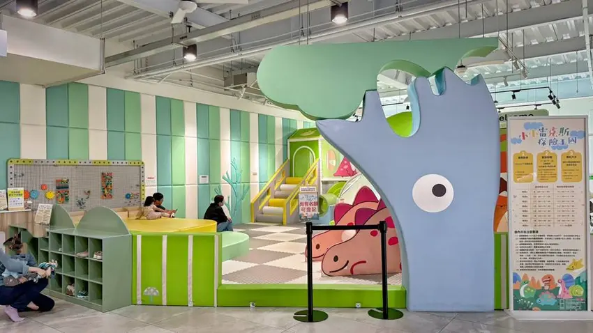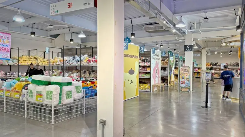 沿著動線來到 2 樓,展售內容從單純的玩偶擴展到了實用的生活小物。除了中型玩偶,這裡更集結了文具、寢具等居家用品,將可愛的角色元素融入日常生活中。2 樓的另一大亮點是設有「小小雷克斯探險王國」兒童遊戲區,這是一個提供給孩童免費遊玩的空間。雖然人潮較多時需要預約,但館方每 30 分鐘就會清場進行清潔維護,確保遊玩環境的衛生與安全,對於家庭遊客來說是一項非常友善的設施。