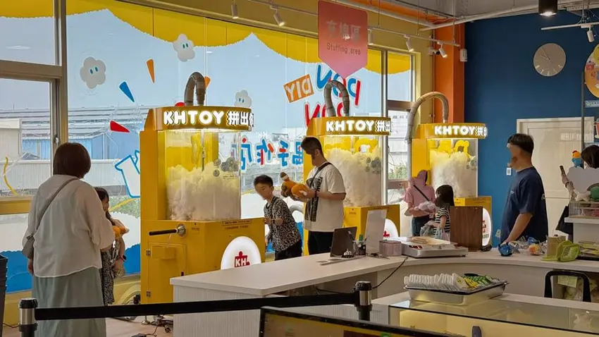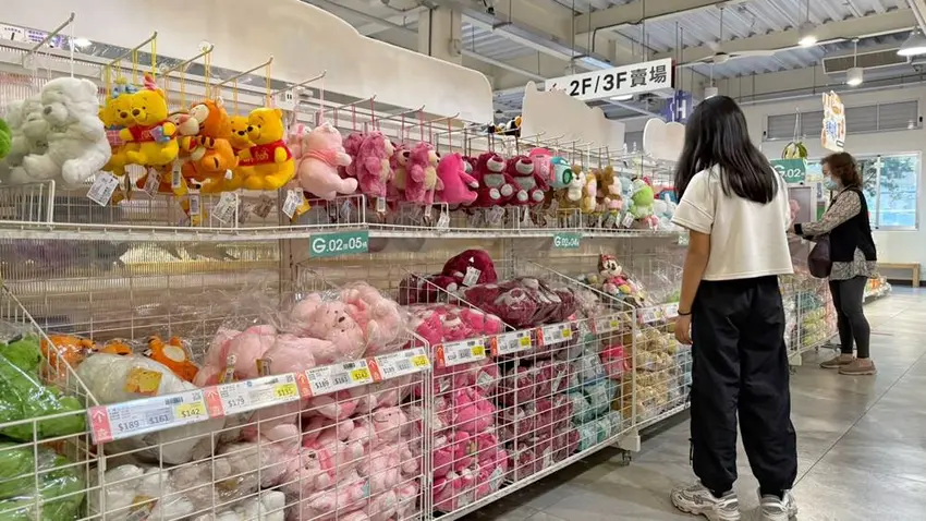 KHTOY 絨毛玩偶旗艦館的地點位於民雄工業區,對於自行開車或騎車前往的遊客最為便利。園區貼心設置了免費停車場,若本館前方空間停滿,斜對面約 100 多公尺處亦設有備用停車場供停放。全館採免門票入館制,僅有 3 樓的 DIY 體驗需要額外付費,這種親民的入場方式吸引了大量人潮。此外,館方也提供滿額優惠機制,全館消費滿 1000 元可享 85 折,滿 3000 元更可享 75 折優惠,對於想要大量採買的遊客來說極具誘因。