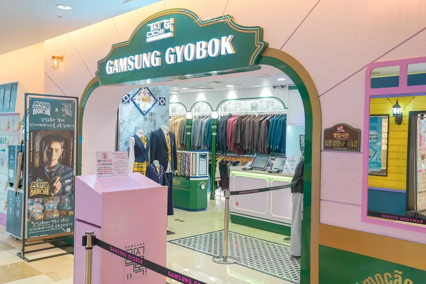 感性校服作為韓國知名的校服租借連鎖品牌,在首爾多個熱門景點皆有據點。樂天世界分店因其地理位置極佳,租好服裝走出店門即可抵達石村湖水公園與樂天世界遊樂園,成為旅客的首選。店內提供完整的租借流程,從提前預約到現場試穿皆有明確指引。除了校服本體,還有領帶、書包、帽子等配件供選擇,讓造型更具層次。租借費用包含一整天的穿著時間,並提供置物空間存放私人物品。穿著精緻的校服,在旋轉木馬或夢幻城堡前留下紀念,已成為蠶室一帶最具代表性的旅遊體驗之一。