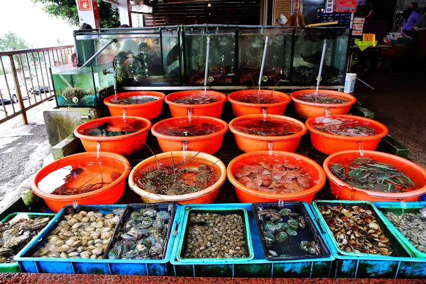 富基漁港分為「魚市直銷區」與「觀光市場區」,可以到魚市挑選漁獲、再代客料理