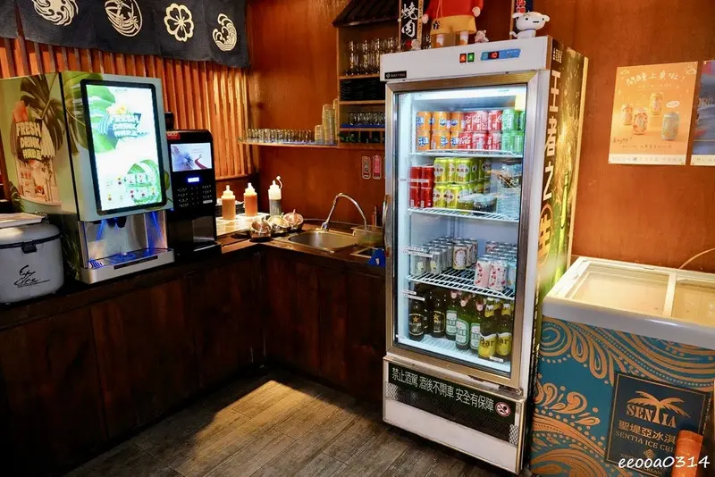 自助吧也誠意滿滿,除了各式飲品、多款酒類像是啤酒、水果酒等(999元起以上無限暢飲)、冰淇淋外,還有吐司、麵食及牛丼等!
