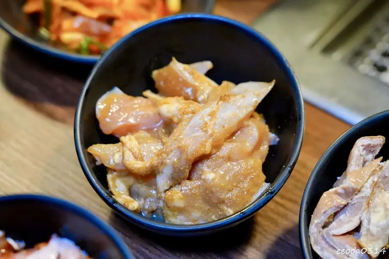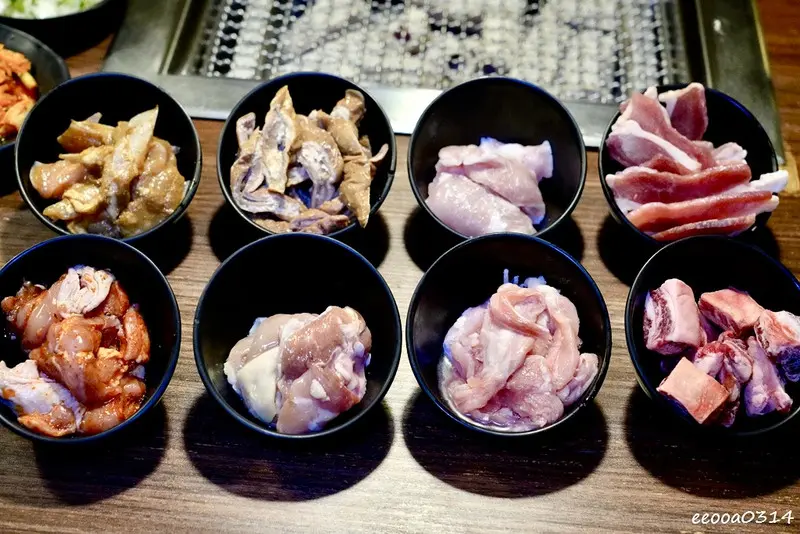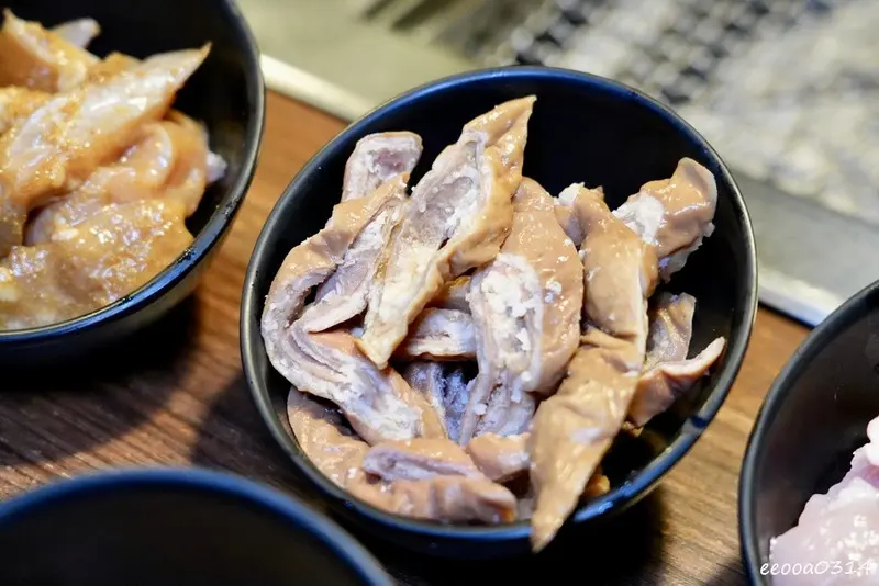 雞腿肉烤起來外皮微焦、裡面依然鮮嫩多汁;三角雞軟骨則是越嚼越香、很有口感;櫻桃鴨胸則多了一點細緻的油脂與香氣,吃起來更有層次。