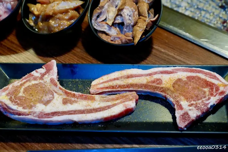 豬肉的選擇也不少,像是口感脆彈的松阪豬、厚實的活菌豬排,還有鹹甜入味的味噌豬小排等,每一款都肉質紮實、烤過後香氣十足。