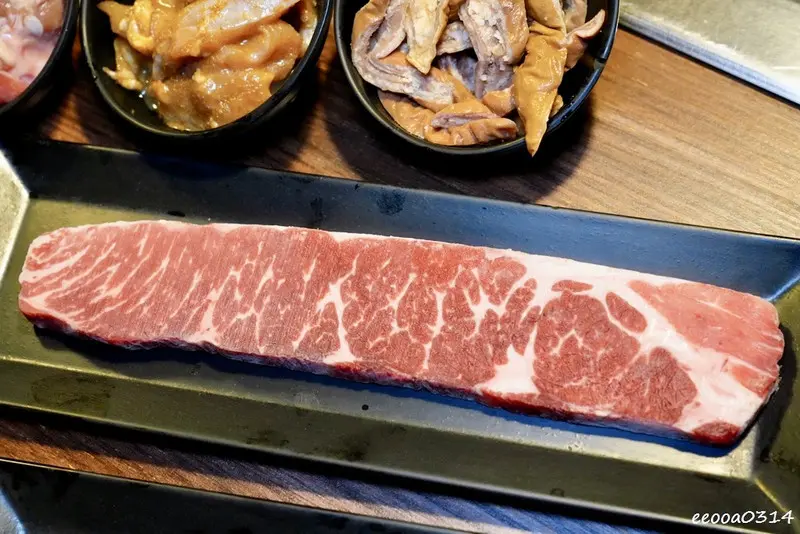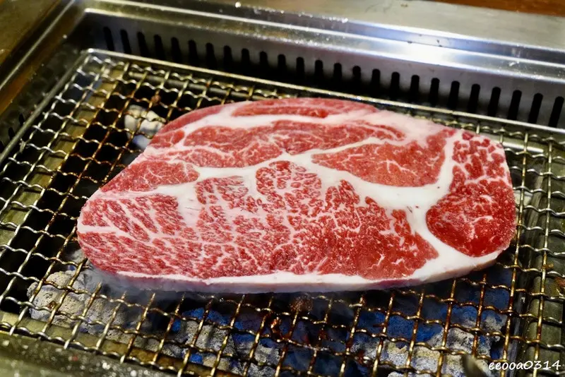 送上桌的肉品紅潤色澤與油花分布都很漂亮,沒有多餘的裝飾,看得到新鮮度,下爐烤過後的香氣與口感也確實很有水準,對得起它的價位。