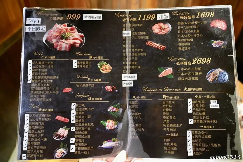 一燒十味昭和園林口店的收費方式非常靈活,從平價吃到飽到頂級奢華通通有:
