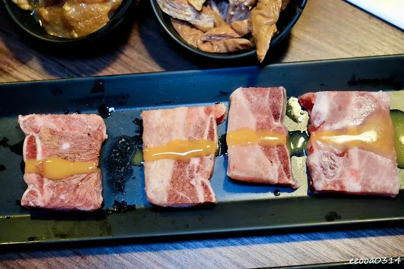 牛肋條也是很推薦的一道!帶有豐富油脂的部位,烤的時候香氣整個被逼出來,滋滋作響超誘人。