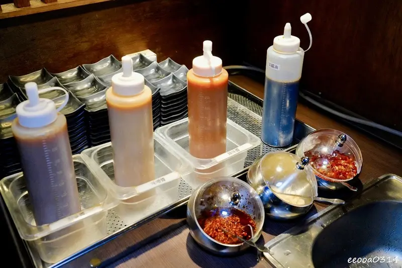 在自助區,可以看到琳瑯滿目的調味料選擇,像是辣味噌醬等。