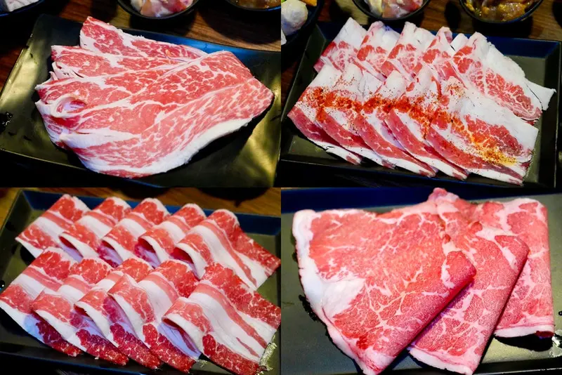 像是油花均勻的雪花牛、口感扎實又帶點嚼勁的無骨牛小排、嫩中帶彈的嫩肩板腱牛,還有香氣十足的牛培根,以及風味濃郁的黑傑克和牛等,每一種都有不同特色。