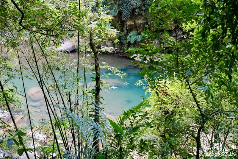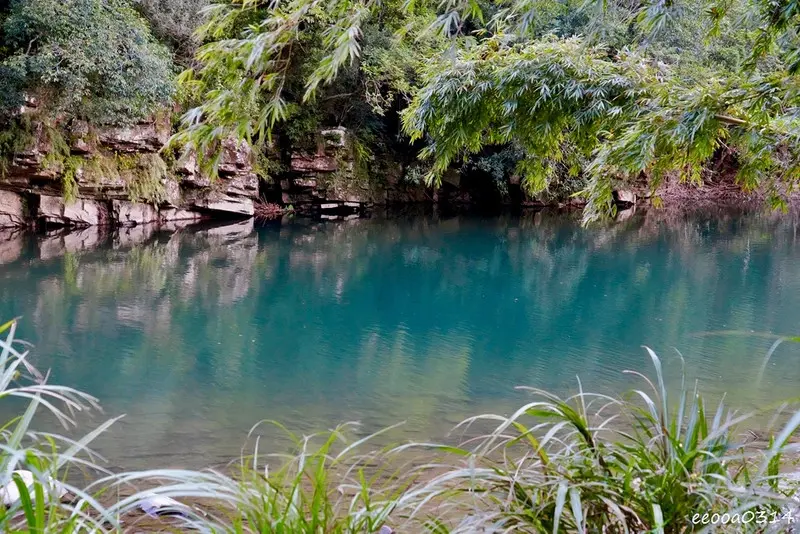 走著走著,來到一處擁有寶石般耀眼的碧綠潭水,整體氛圍很靜謐,也有種秘境感。